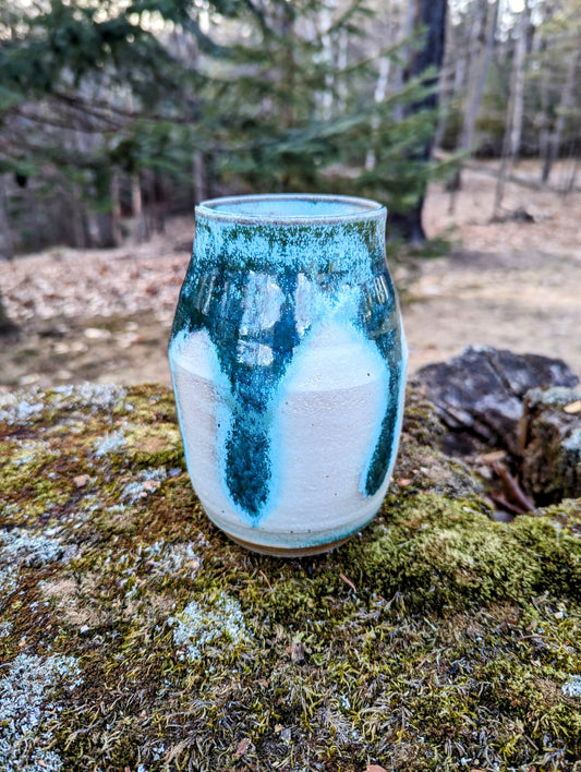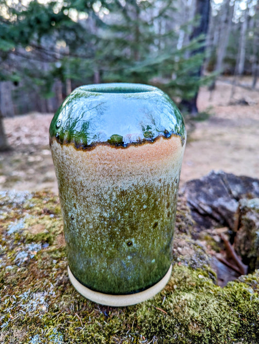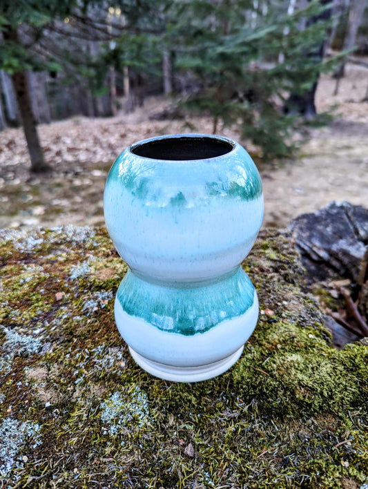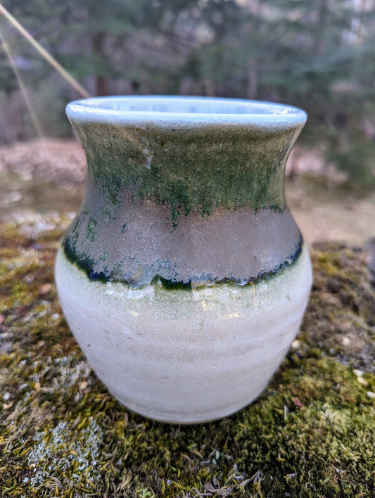 Vase - Green Wood Ash Glaze on Glossy White